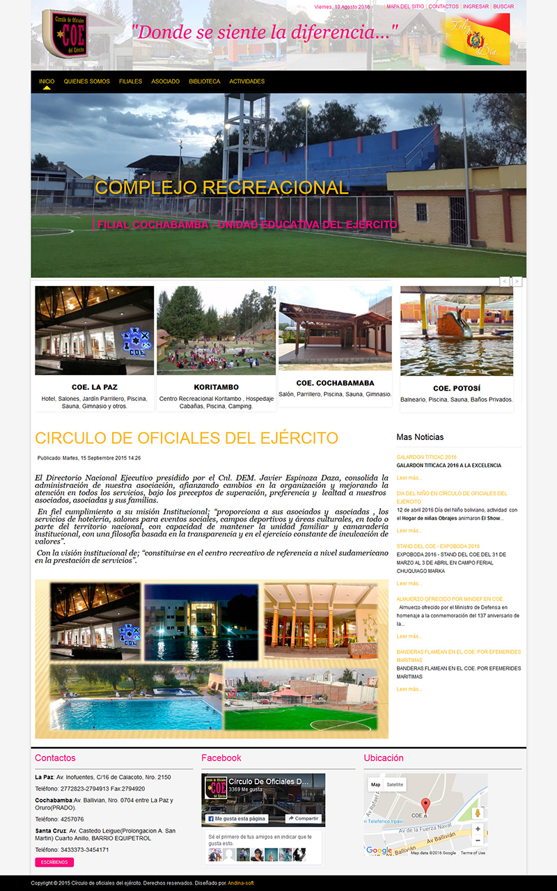 Círculo de Oficiales del Ejército Bolivia. Possibilité de réserves pour les officiers de l'armée Bolivienne différentes activités au sein du club des Officiers.
