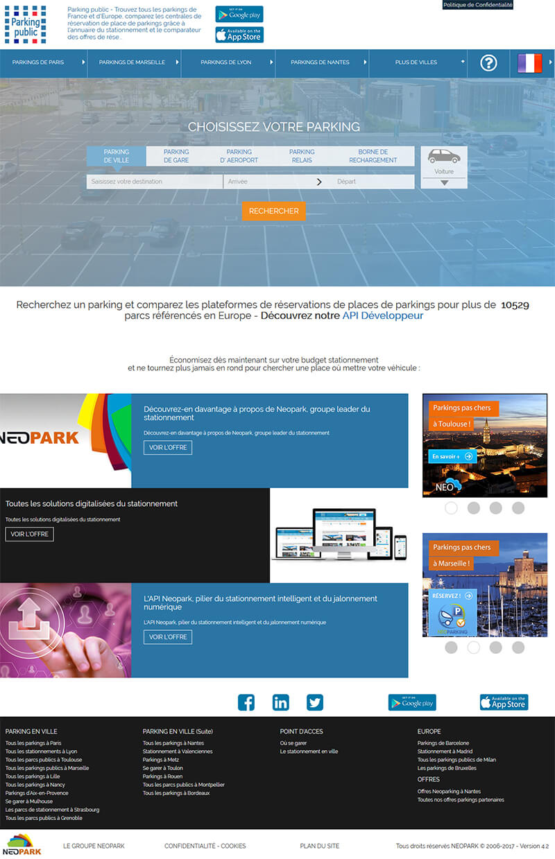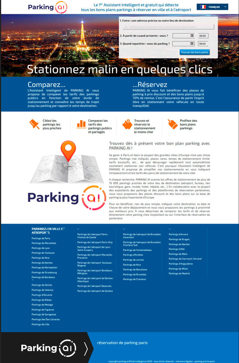 Comparateur et réservation de parking selon sa géolocalisation en Europe.