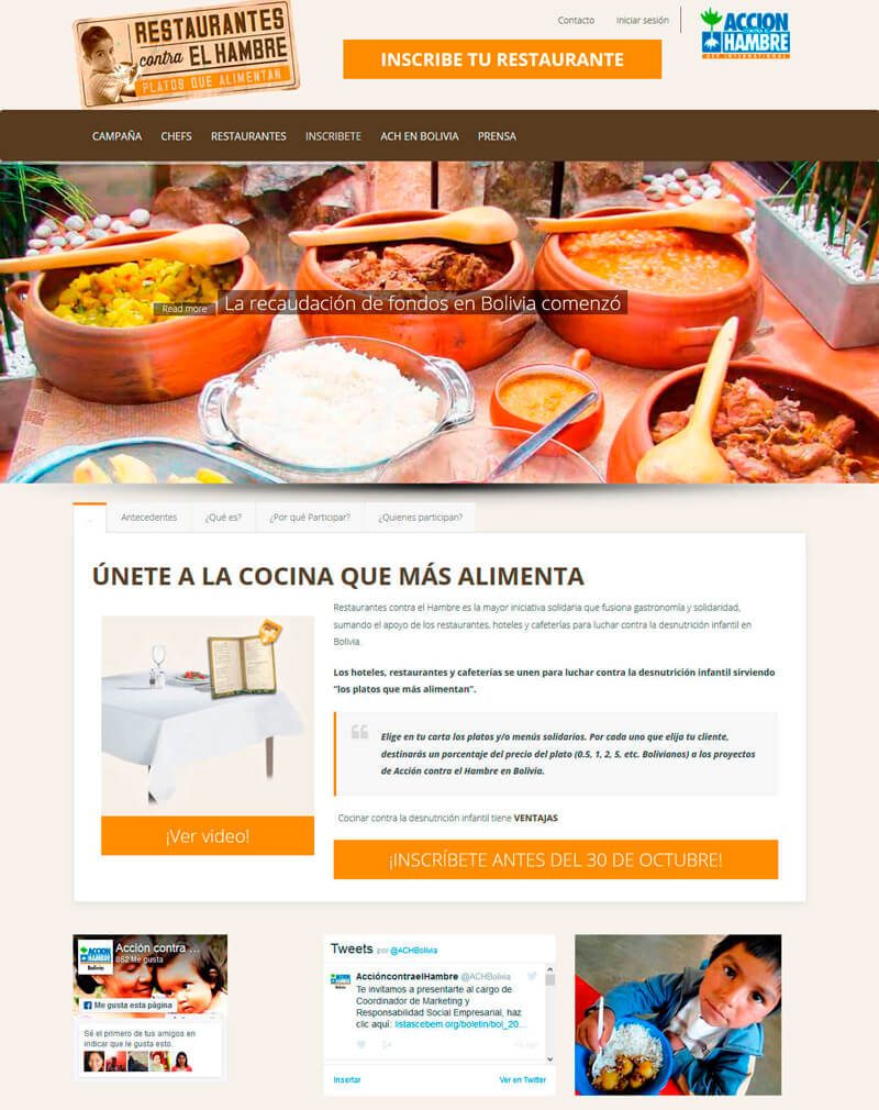 Restaurants Contre la Faim Bolivie. Evènement de l'ONG Action contre la Faim Bolivie..