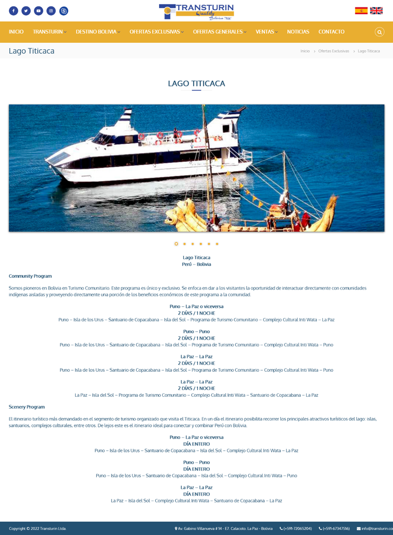 Entreprise de Tourisme en Bolivie / Pérou , spécialisée dans les croisières sur le lac Titicaca.
